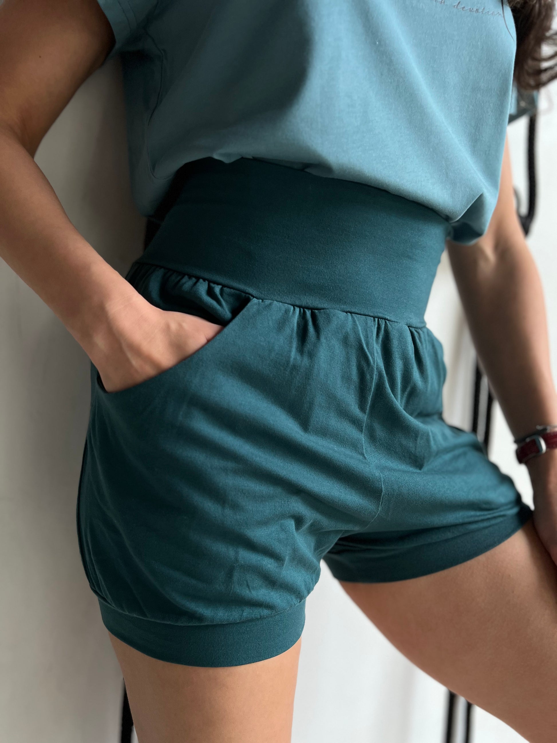 The wide, high-rise waistband provides support without digging in, while roomy front pockets add functionality without bulk. Whether you're headed to a yoga class, running errands, or simply relaxing, these shorts are your new go-to for comfort and conscious living.